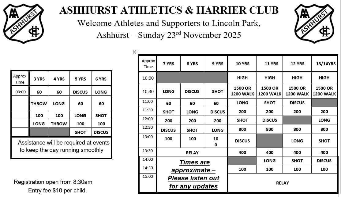 Please join our Palmerston North Athletic and Harrier Club Facebook group for regular updates.