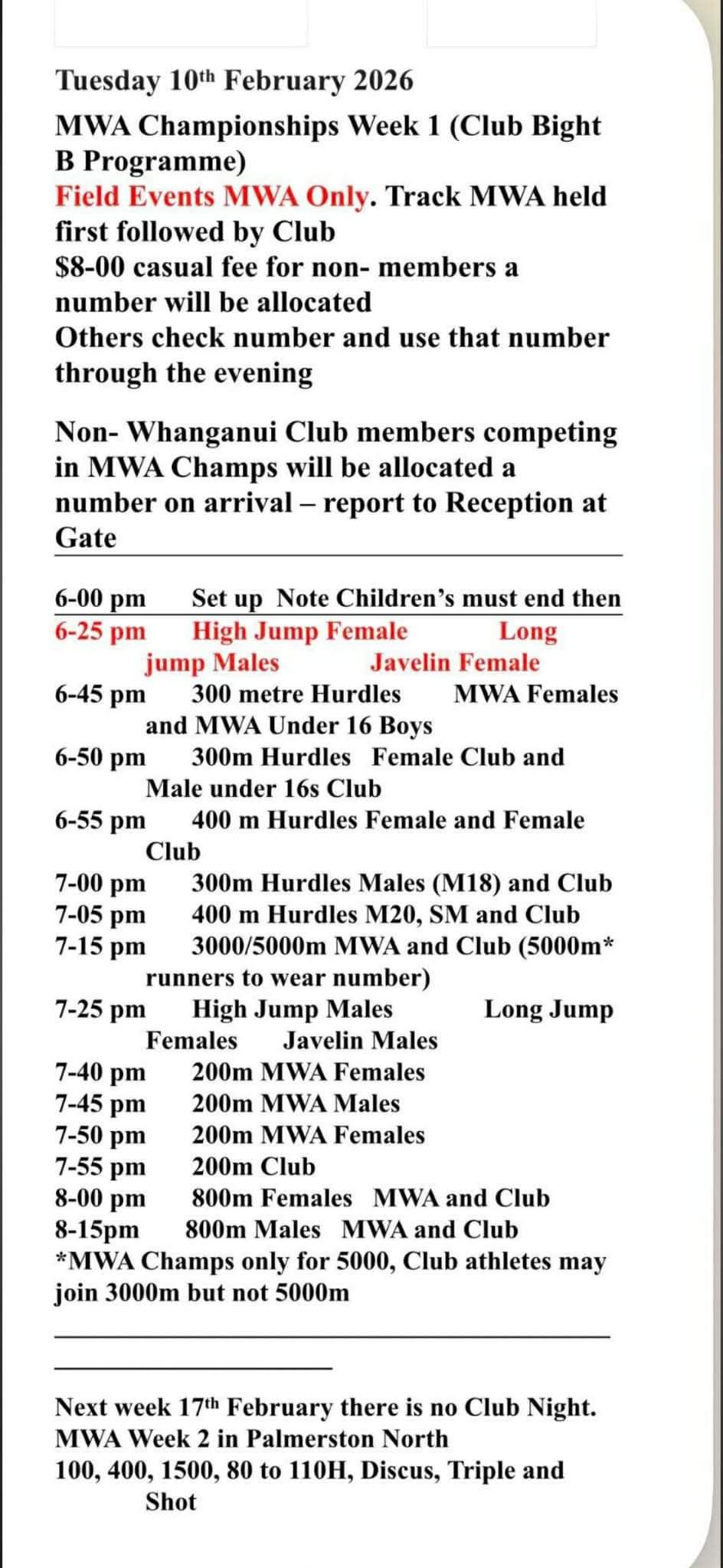 Feb 8 Paraparaumu Track and Field Club Ribbon Day Grade 7-14